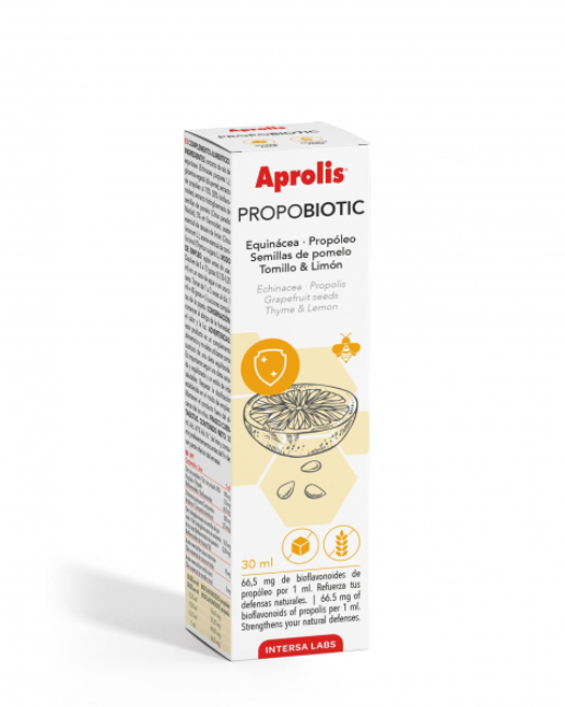 Aprolis Propobiotic es un complemento alimenticio en forma líquida, formulado con una combinación sinérgica de extractos vegetales y aceites esenciales, diseñado para reforzar las defensas naturales del organismo. Este producto es ideal para mantener el bienestar general y apoyar el sistema inmunitario.